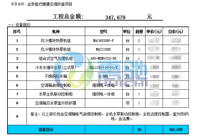 項目配置:麥克維爾風冷模塊熱泵機組 組合式空氣處理機組 美的中央空調Si系列機組